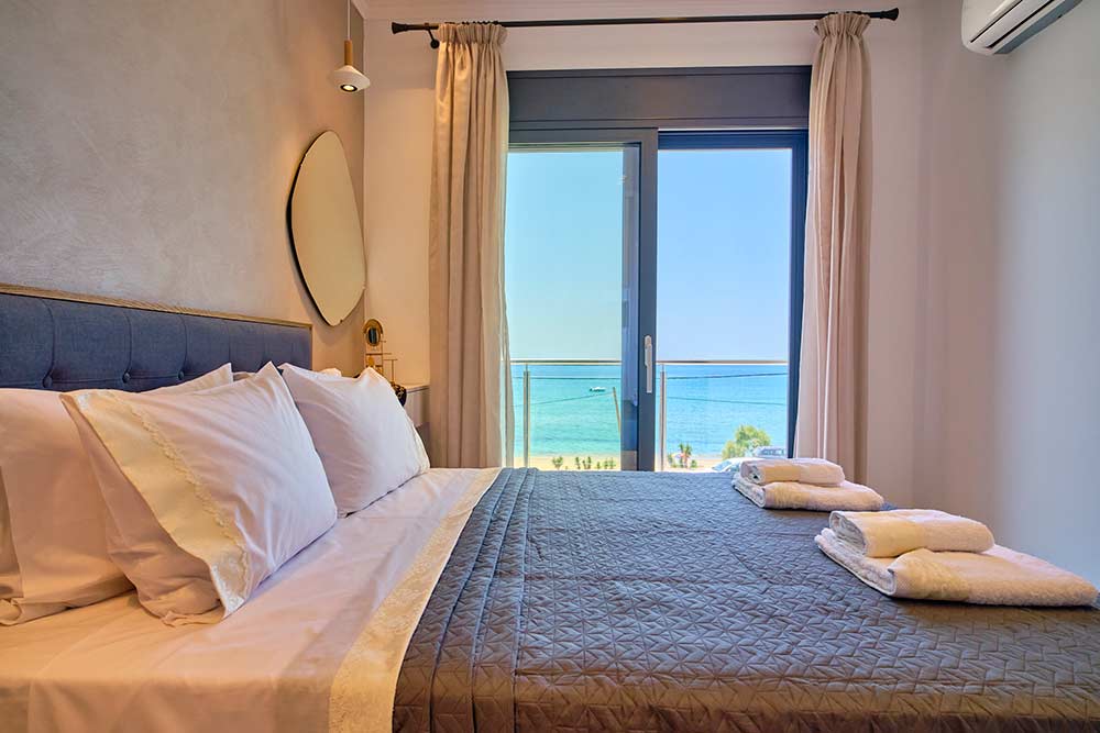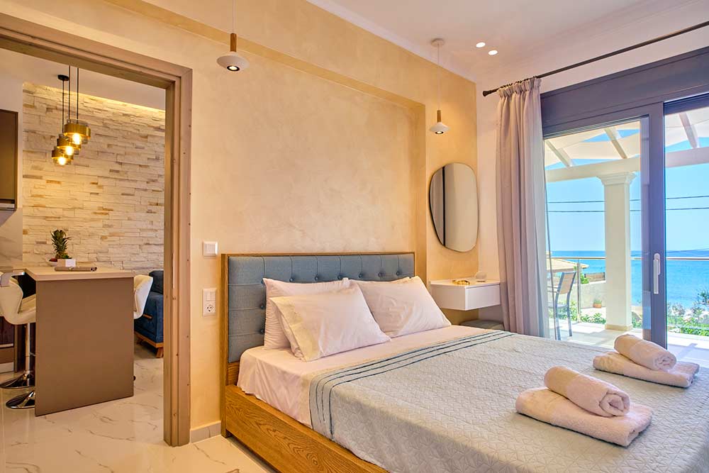 The luxury modern and cozy decorated suites promise a relaxing break of the stressful daily routine offering panoramic sea views of the bay of Agios Georgios and the stunning sunsets in the Diapontia islands.