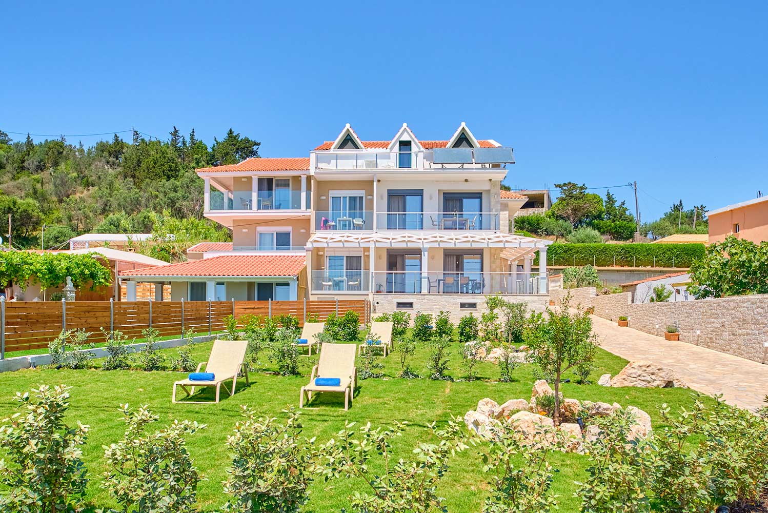 Christos Corfu Premium Suites is a recently renovated holiday accommodation consisting of 3 luxury suites in a great location on the North West coast of Corfu , right on the beach of Agios Georgios.